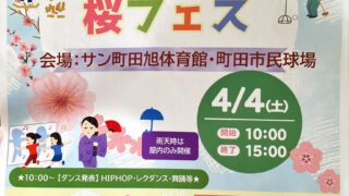 町田・サン町田旭体育館で開催の「にぎわい桜フェス2026」に8ヶ月の赤ちゃん連れで参加!雨でもキッチンカーがなくても楽しめた体験をリアルにレポします。