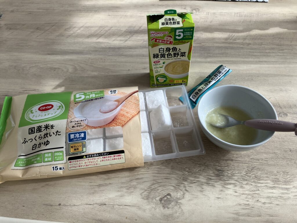 【明日で生後7ヶ月】今日の離乳食|白がゆ&白身魚+コープデリ購入品