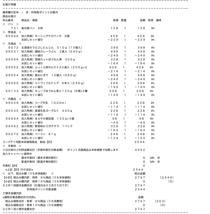 初めてのコープデリが届きました