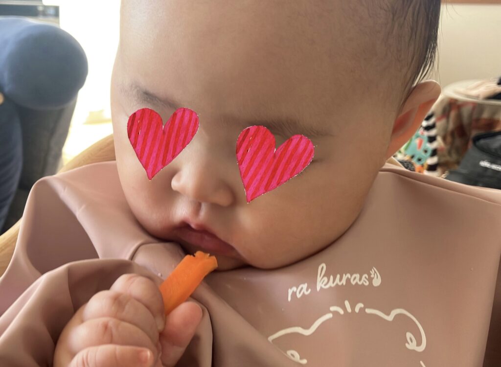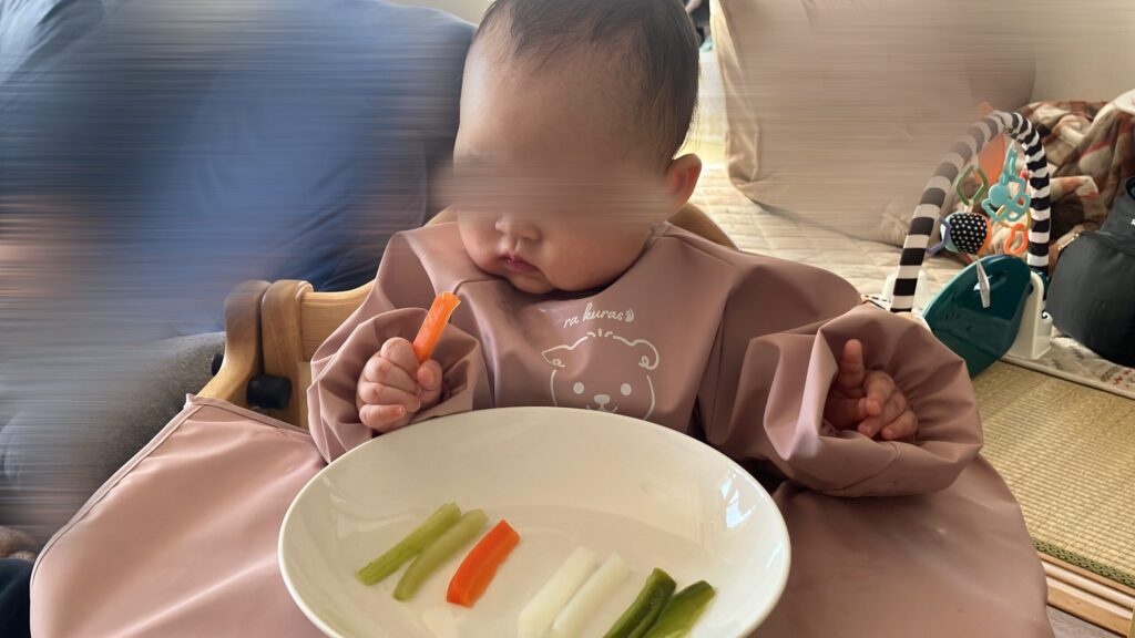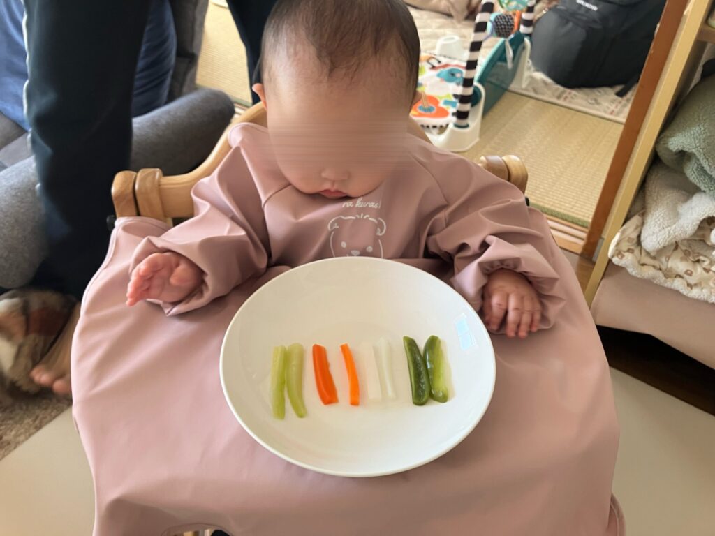 【生後8ヶ月】初めてのつかみ食べに挑戦!初めての反応はまさかの…?