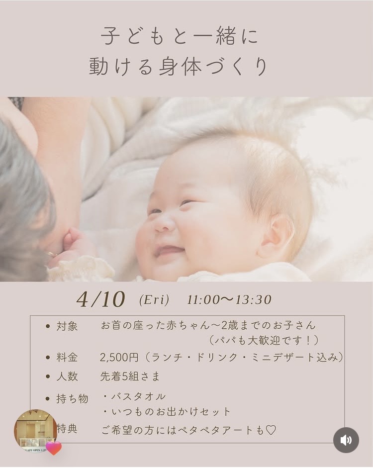 - 算命学・リトミック・ベビーマッサージなど子育て世代向けイベントが充実