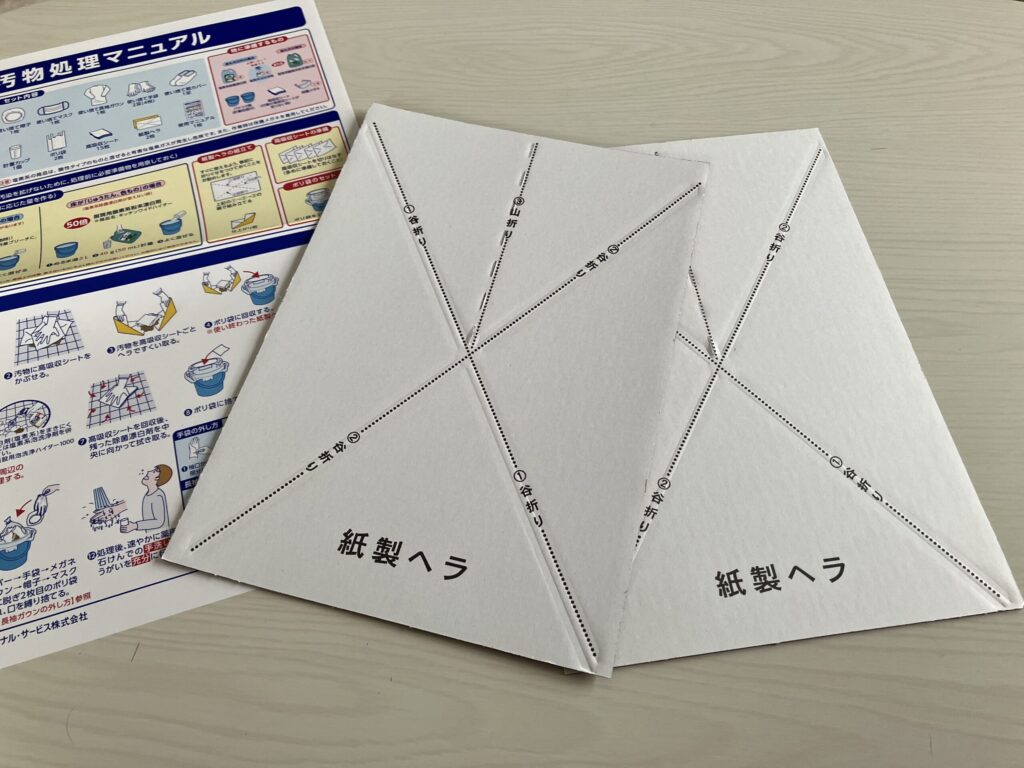 それからこの紙製ヘラで、汚物を高吸収シートごとすくって捨てるんだそう。