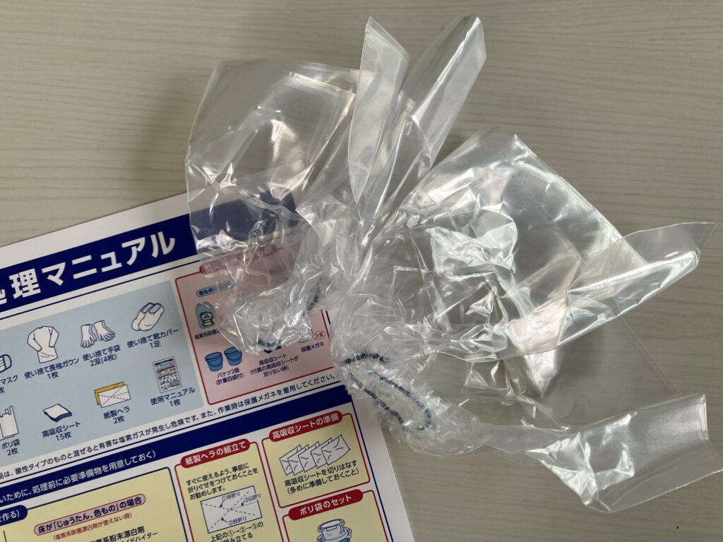 そう、この汚物処理キット、除菌漂白剤は入ってないんです!