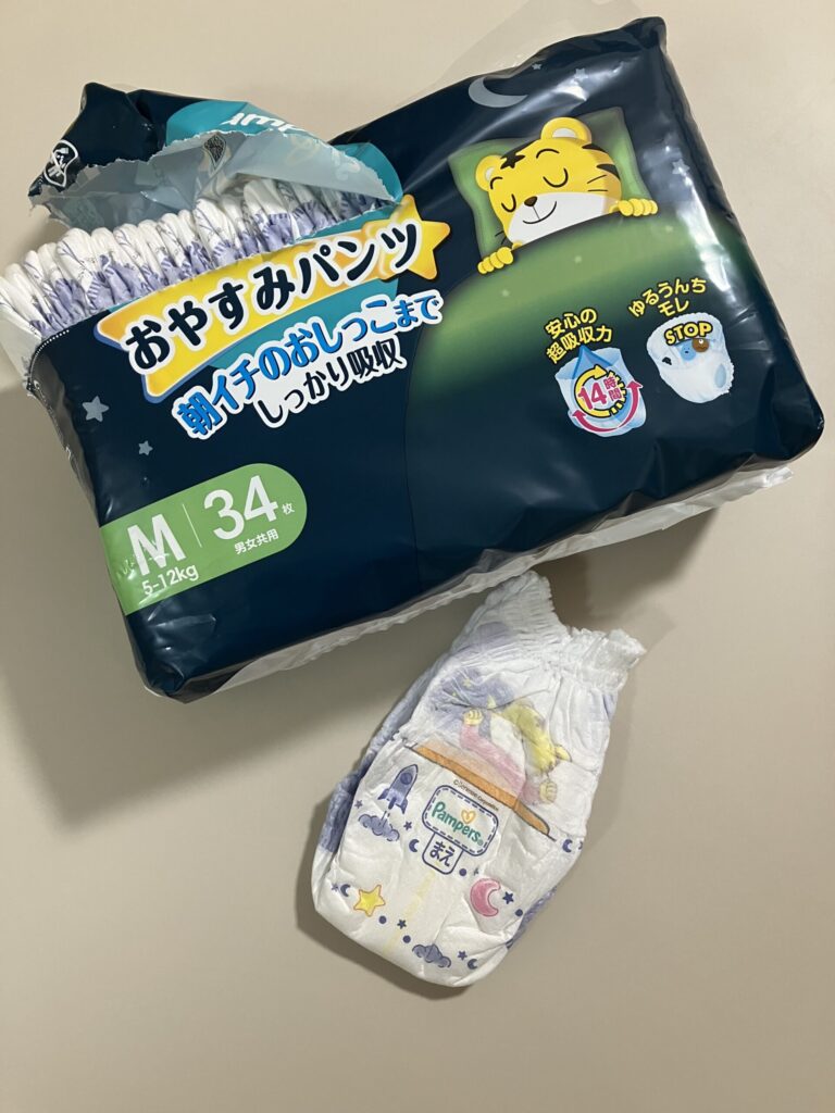 うちも先月、七夕ちゃんが8ヶ月のときにパンパースのおやすみパンツに切り替えたんですが、これがもう戻れないくらいよかったんです。
