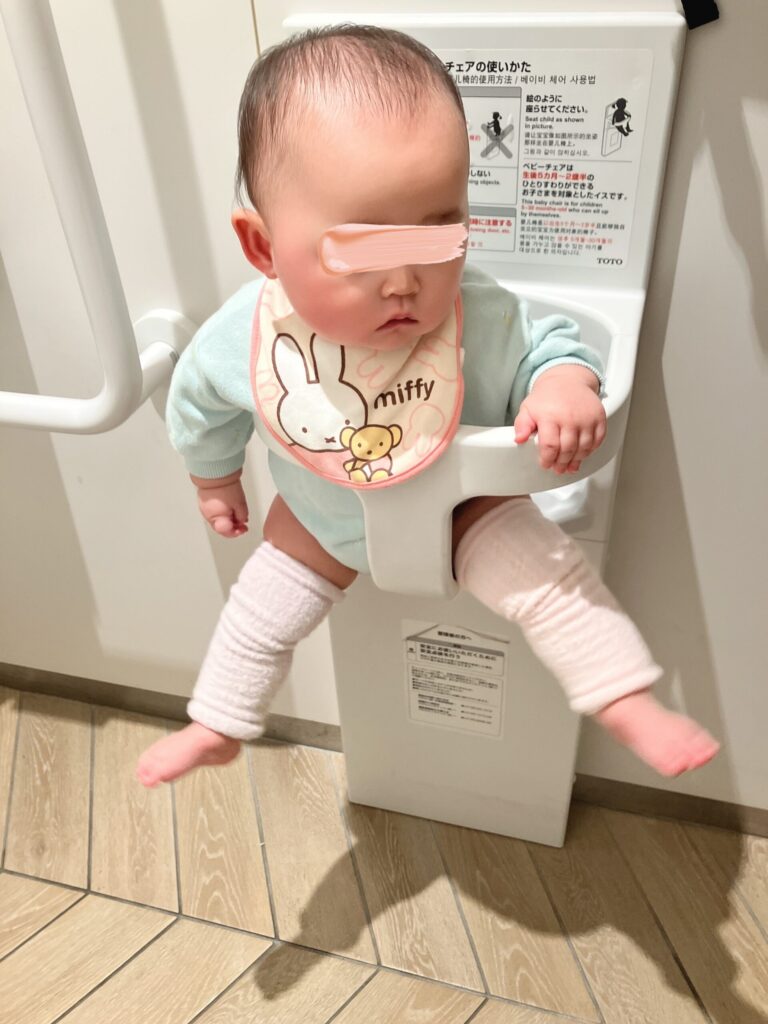 【体験談】トイレのベビーチェアが便利すぎた!抱っこ紐のままでも使えた話